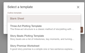 Artificial Intelligence is built into the Pro version of the program and it comes up with some funny stuff. When you first create a new book, it asks you the genre of the book (it has quite a comprehensive list to choose from) and which story structure you want to use (it gives a pretty long list, including lot of structures I had never heard of: five act, Harmon’s Story Circle, Kishōtenketsu, Seven Point, Story Spine). Based on these and the summary of the book you type in, the AI creates an outline for you adding in whatever details you might have left out including character names and plot points (in other words, it creates the story for you).
